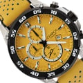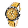 Powered by a Swiss made Ronda Chronograph movement and an intriguing multi-step press pattern dial, the Chairos Chrono + oozes sporty confidence. With indices fixed at the top of the dial, one cannot but marvel the state-of-the-art looks of this timepiece. Available in two designs – blue dial and yellow dial, with dotted-style genuine leather straps.